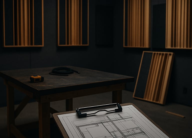 Progettazione e realizzazione artigianale di spazi sonori: home studio, studi di registrazione, sale prova e sale cinema private.